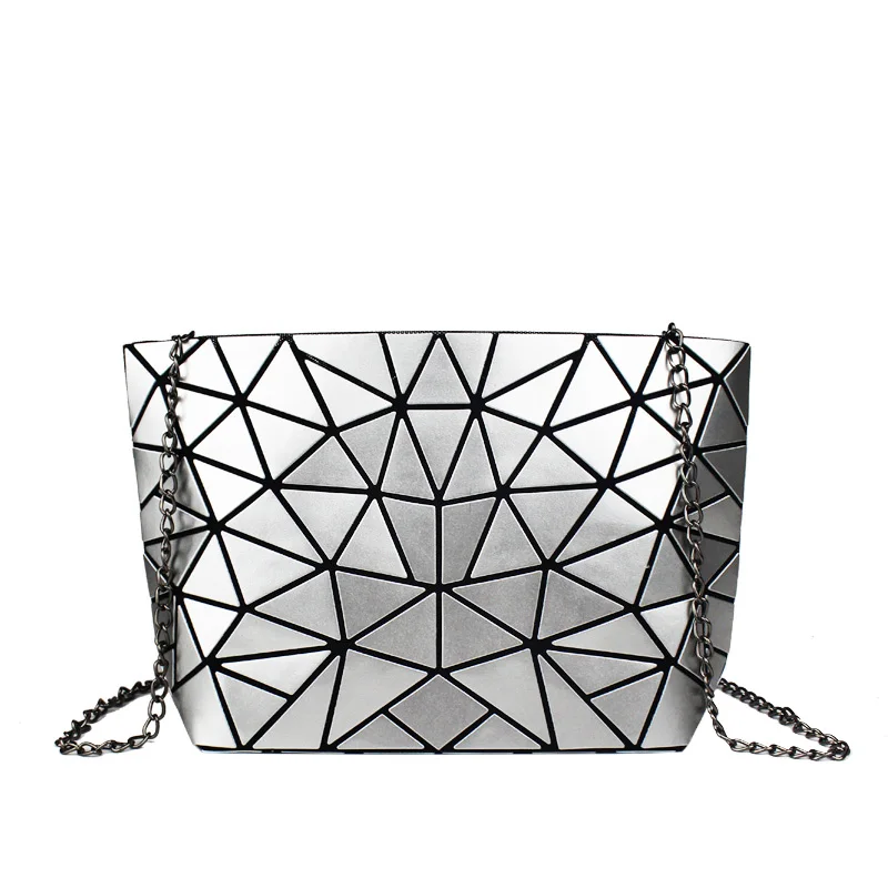 استعارات ل الشهيرة العلامة التجارية النساء حقيبة كتف الهندسة المرأة البسيطة سلسلة الهولوغرافي Crossbody أكياس النساء عادي للطي حقائب حقيبة ساعي