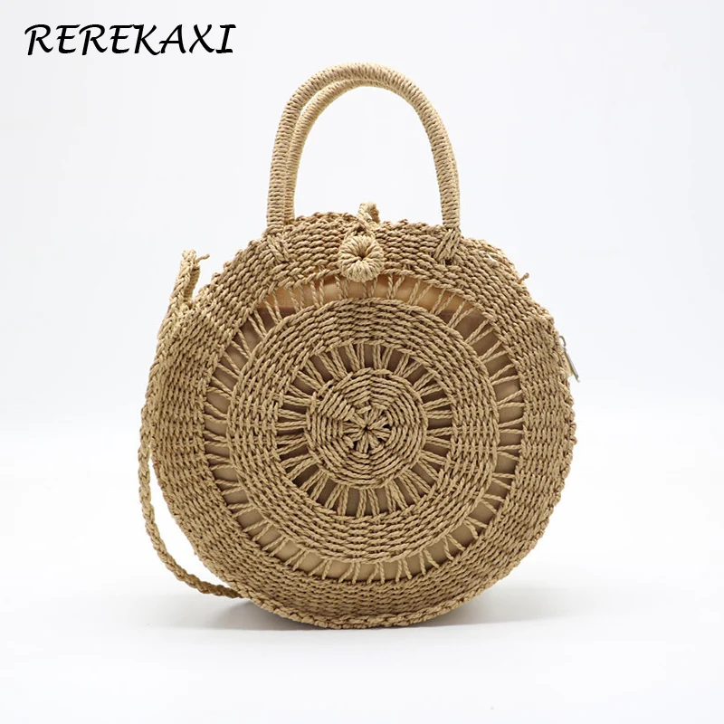 أرغب في شراءمعلومات اضافية جولة المنسوجة حقيبة شاطئية اليدوية النساء حقائب كتف البوهيمي الصيف القش حقيبة الإناث حقيبة يد رسول Crossbody أكياس حمل