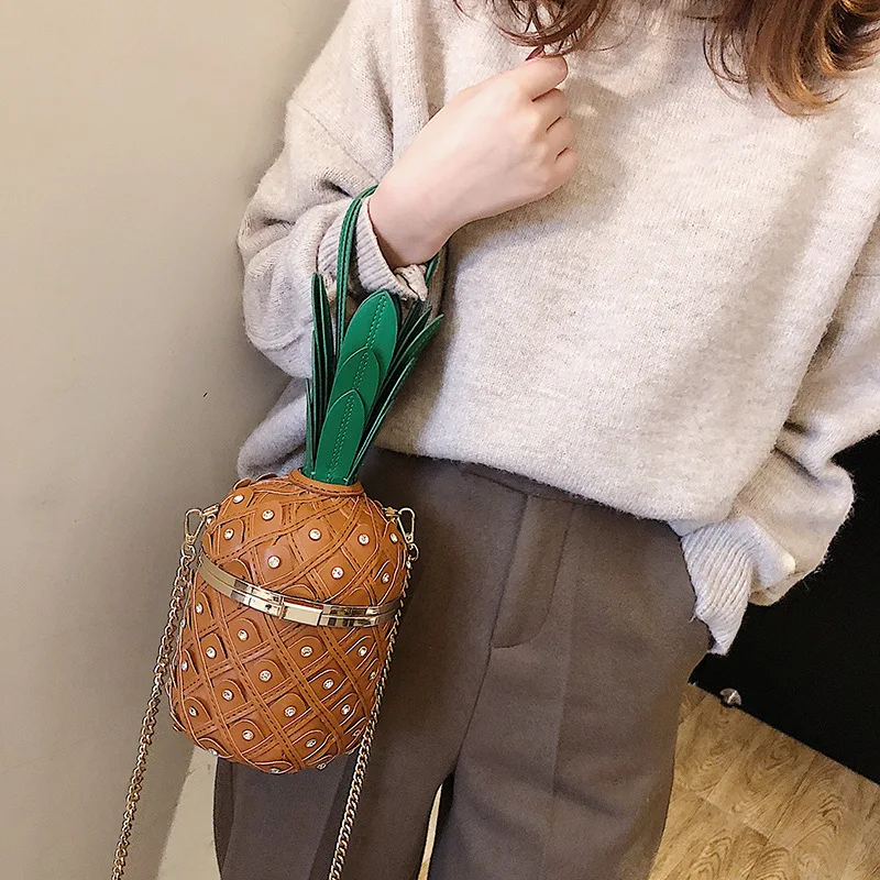 معرض ل جديد تصميم عالية الجودة الأناناس سلسلة حقيبة الكورية أزياء النساء برشام حقيبة كتف المرأة Pesonality Crossbody حقيبة