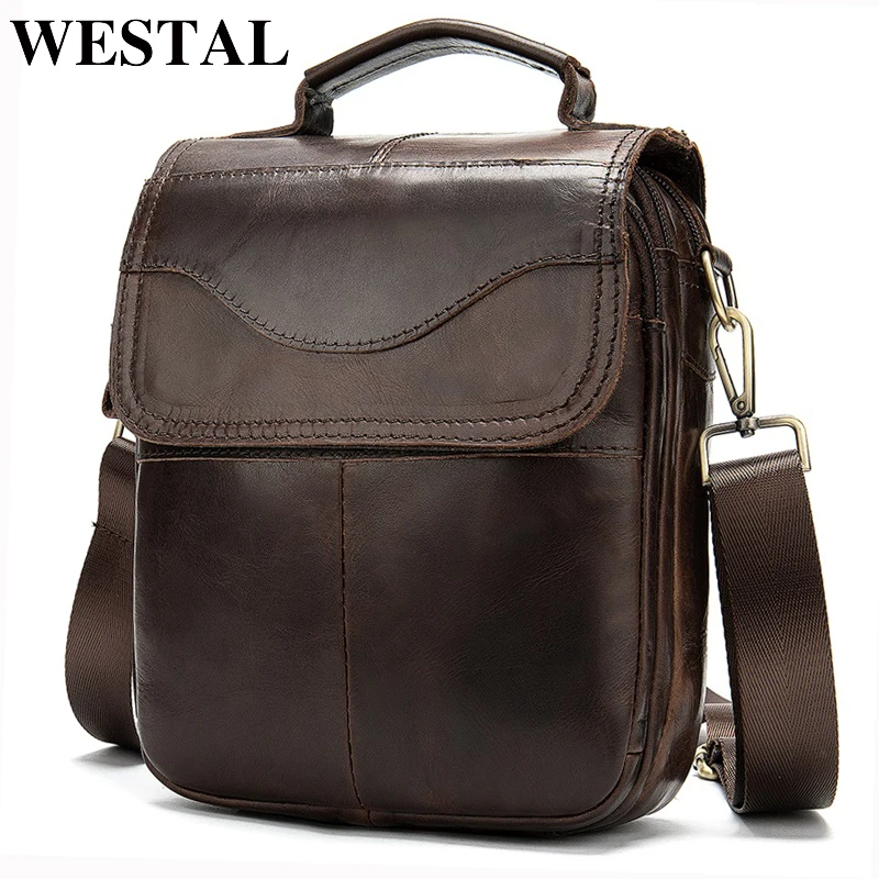 صور من WESTAL الرجال جلد طبيعي/حقيبة ساعي بريد للرجال المرأة حقيبة كتف للرجال الطبيعي جلد رجل رفرف صغيرة crossbody أكياس حقيبة يد 8558